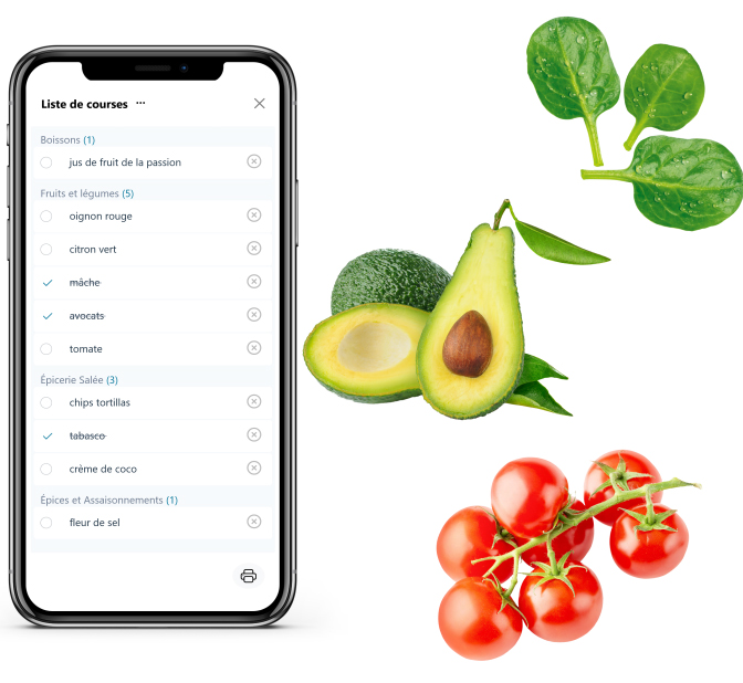 Oui, vous pouvez accéder à votre liste de courses à partir de votre appareil mobile et l’emmener ainsi avec vous lors de vos déplacement en magasins.